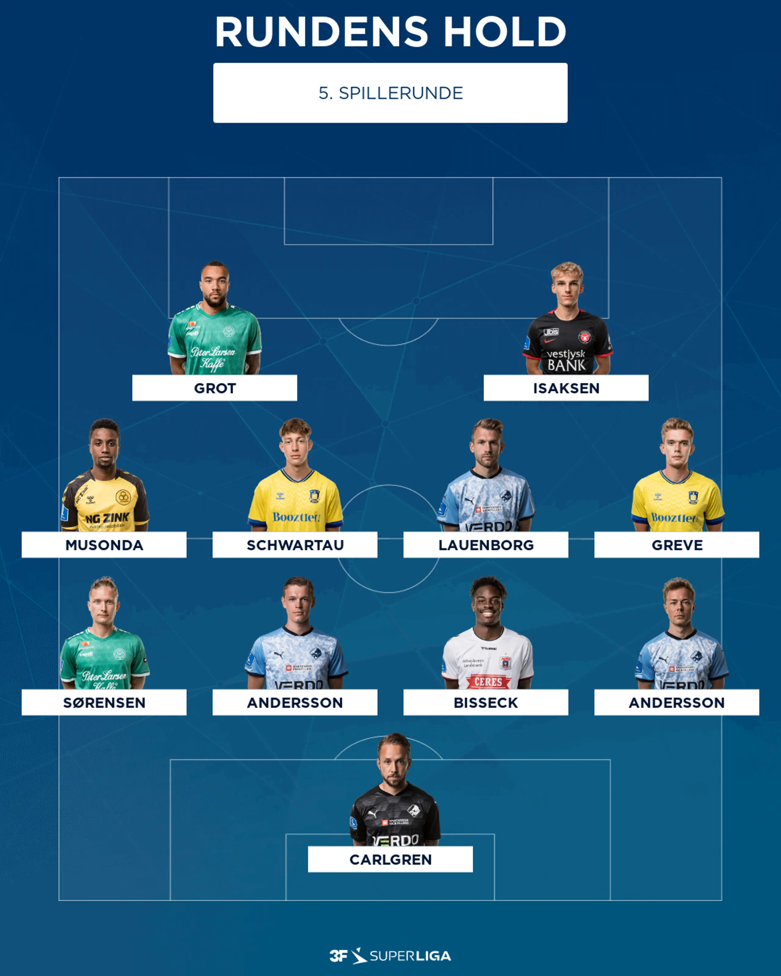 Rundens Hold i 5. spillerunde 16.08.2022 11:57 Rundens Hold i 5. spillerunde - sat op i en 4-4-2 formation